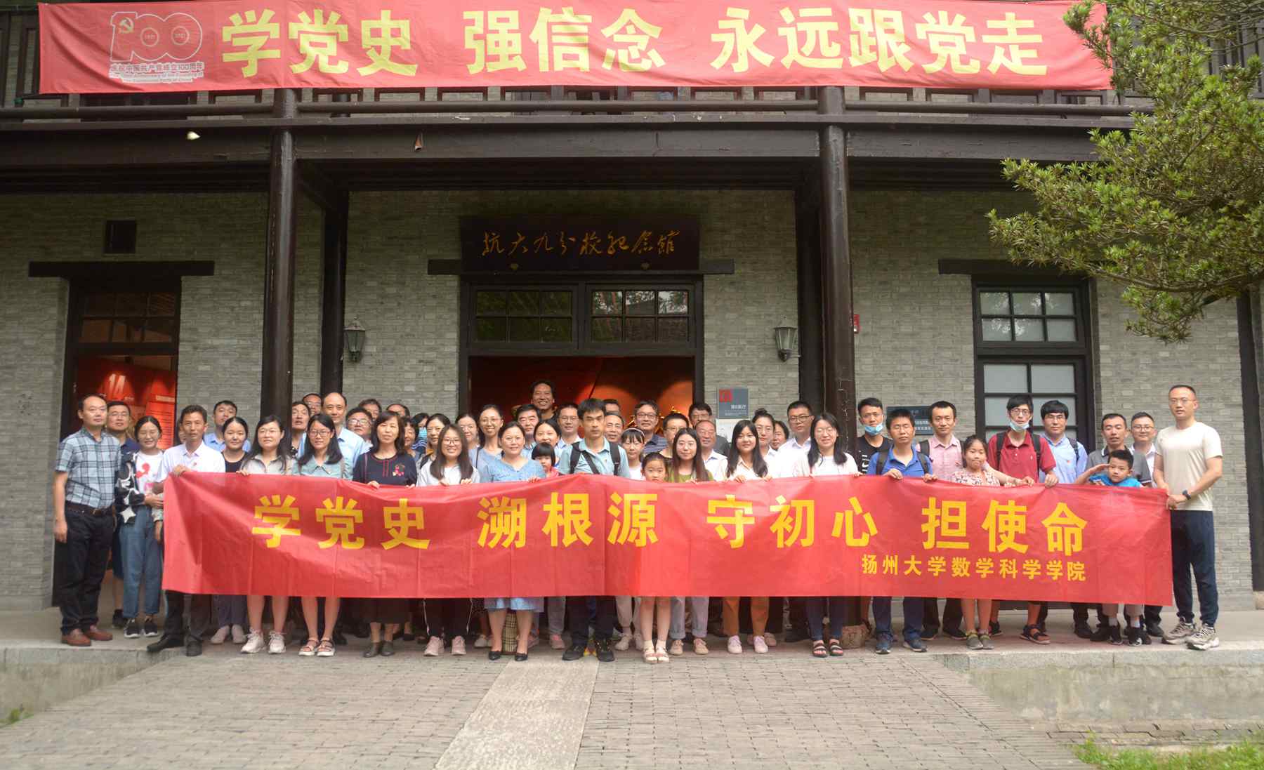 为庆祝中国共产党成立100周年,深化党史学习教育, 6月25日至26日,数学科学学院党委和工会组织全院教职工走进抗大九分校旧址和张謇纪念馆,开展“学党史,溯根源,守初心,担使命”主题学习活动,并结合扬州大学120校庆,开展“忆百廿校史,学张謇精神”的校庆系列活动,追忆革命历史,缅怀先烈遗志,学习先贤们的爱国精神和光荣事迹。