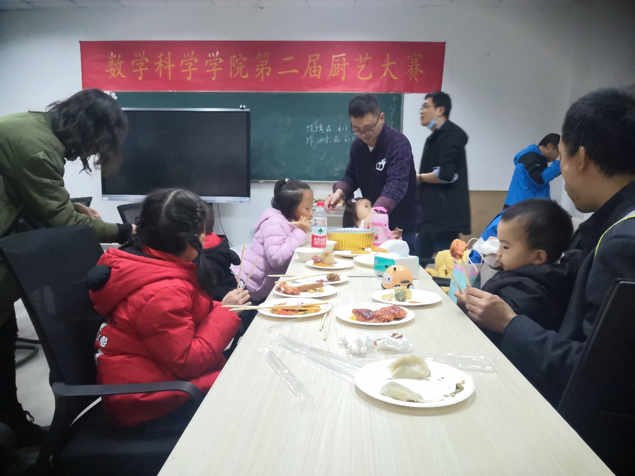 2021年11月26日,数学科学学院第二届教职工厨艺美食大赛在学院办公楼六楼成功举办,师范生技能培训室临时改成了“美食制作中心”和餐厅。由于场地限制, “主赛场”设在617,在611和613设两个“分赛场”。大家一起自己动手,共享美食,度过了一个愉快的夜晚。
