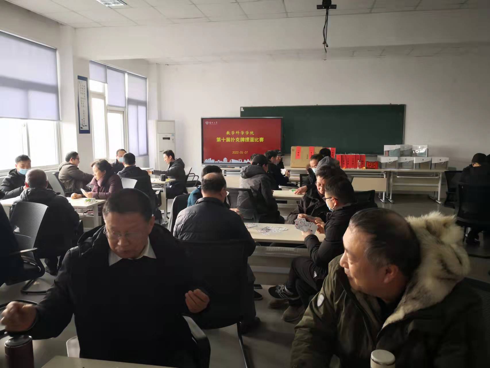 扑克牌掼蛋在数科院有着深厚的群众基础。持续多年的掼蛋比赛,已经成为数学科学学院一项传统的保留活动,是数科院老师们心中的期待。今年由于夏天扬州疫情的原因,秋季学期开学迟,教学时间缩短,但教学内容不减,教学要求不降,数科院每个教师的教学科研等任务都非常繁重,几乎每个周末都要补课,因此难以开展集体活动。在即将结束一学期的教学任务之际,院工会精心组织的掼蛋比赛,使教职工们增进了友谊,放松了身心,激发了大家的热情与兴趣,增强了教职工的凝聚力。大家能以更饱满的热情,投入到以后的工作中去。