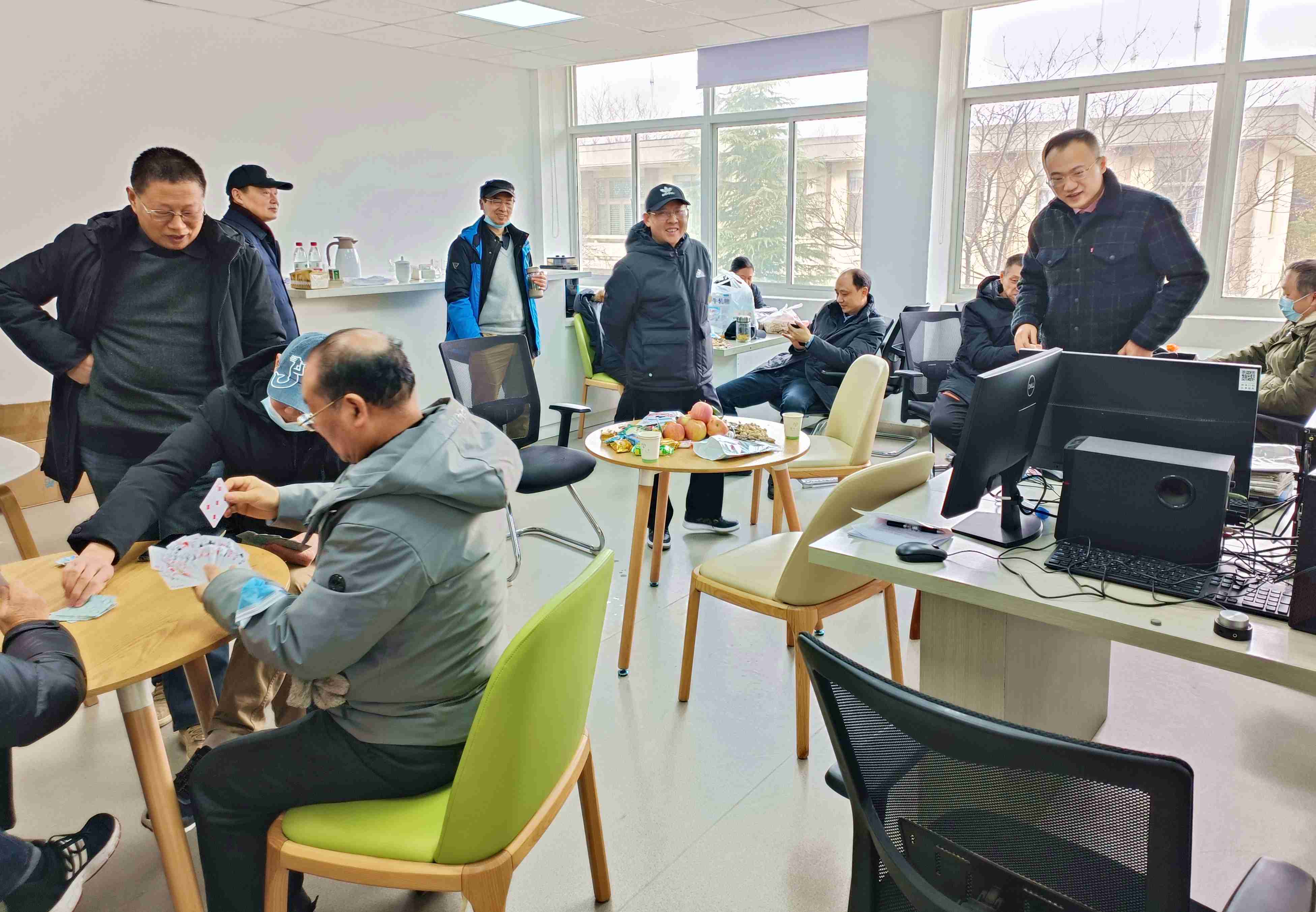 这天上午,学院院长、书记和工会负责人早早地来到了活动室,等待老师们的到来。学院提前为大家准备了苹果、桔子等水果和花生瓜子等休闲食品,寓意着来年大家平安和好运。与往年一样,首先来到的是老教师们,接着在扬过年的老师们也陆陆续续地来到了现场,大家互祝新年快乐,畅谈愉快的事情,有些已经迫不及待地玩起了扑克和围棋。小朋友们的到来,总能掀起一个个小高潮。大家一起度过一个欢乐祥和的新春佳节。