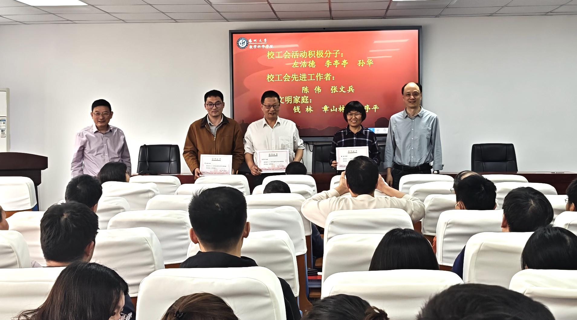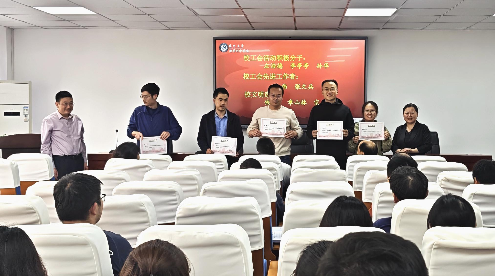 4月9日下午,数学科学学院召开了2024年度工会工作表彰大会,学院领导和全体工会会员参加了大会。会上总结了去年学院工会工作,展望了今年的工会活动。院领导分别为获得校工会活动积极分子、校工会先进工作者、校文明家庭和院工会活动积极分子的老师颁发了奖状。
