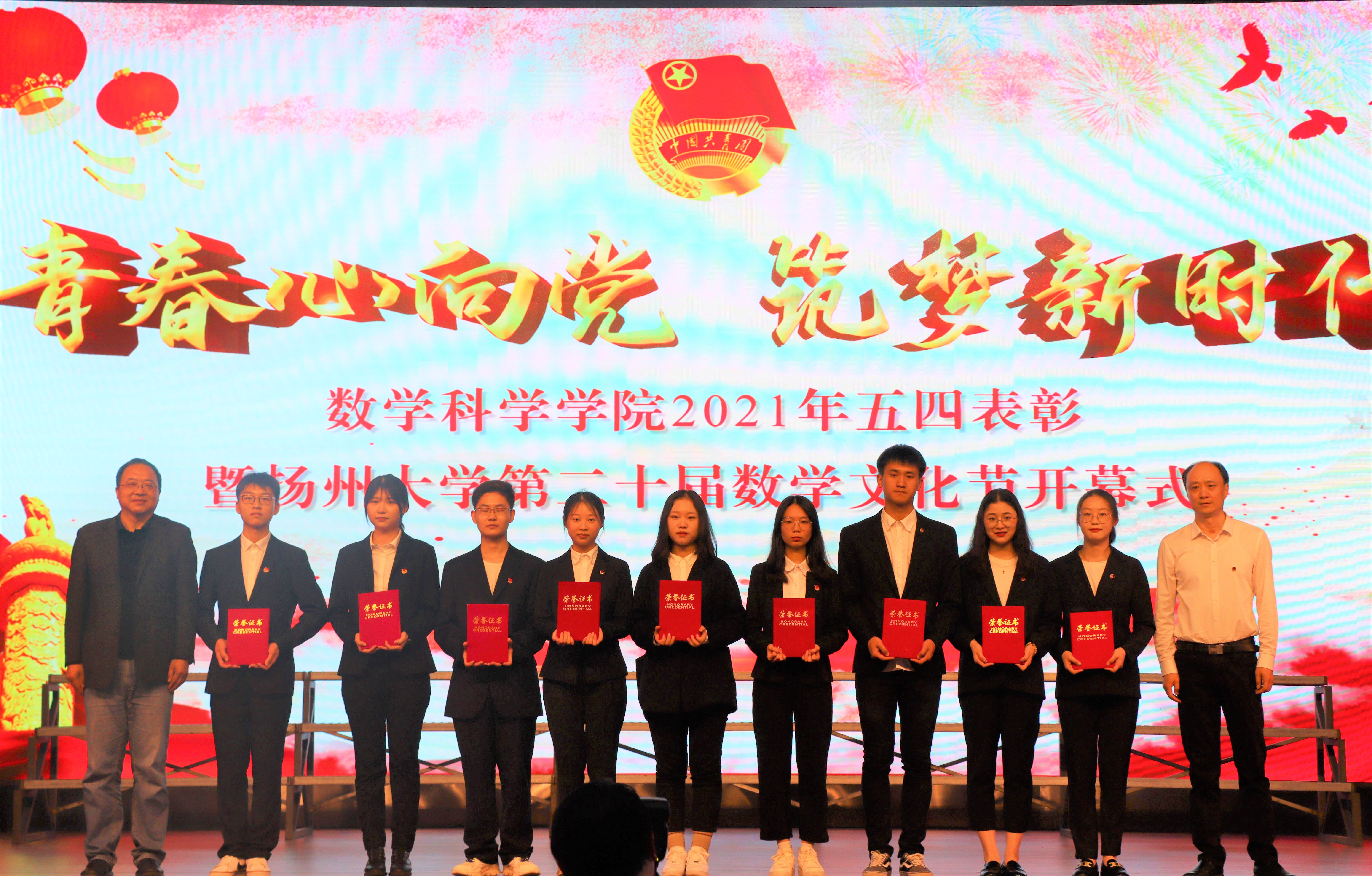 嘹亮国歌声响起,本次活动第一项议程——五四表彰大会拉开帷幕。首先,由郭丽老师宣读2020—2021学年数学科学学院“五四”系列表彰决定,接着由副院长黄强联老师宣读2021年度省级以上获奖名单。