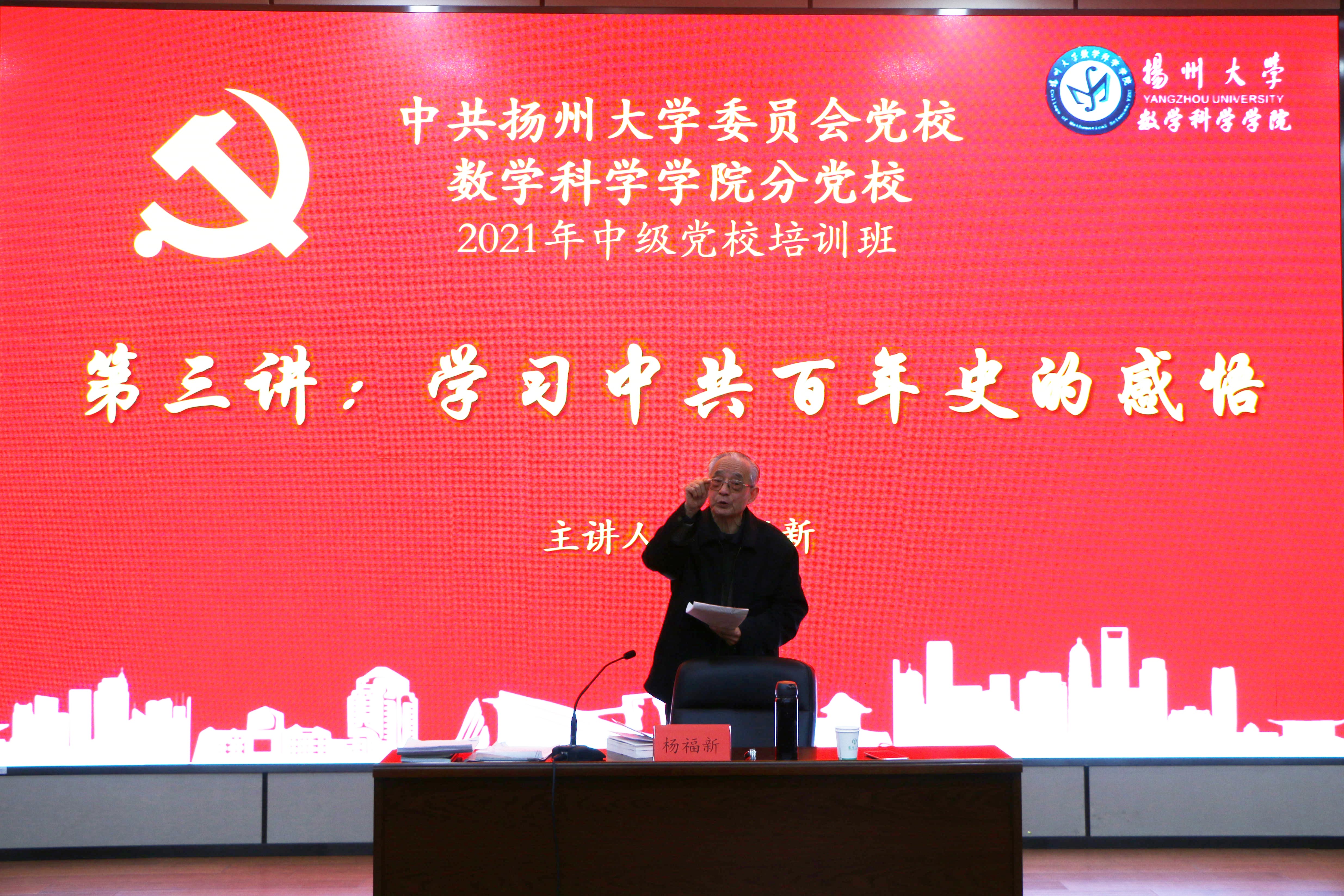 为响应党中央对党史学习教育的号召,培养青年人党史学习意识,4月10日,数学科学学院邀请到党史宣讲人杨福新老师,作“我学中共百年史的感悟”讲座。本次讲座以数学科学学院中级党校为载体,数学科学学院全体入党积极分子参与讲座。
