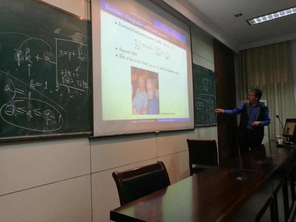 山东大学副校长、长江学者刘建亚教授应邀来数学科学学院作学术报告 2016年9月28日下午,山东大学副校长、长江学者刘建亚教授应邀在我校瘦西湖校区数学科学学院学术报告厅,作题为“The Twin Prime Conjecture”(孪生素数)的学术报告,数科院院长李刚教授主持此次讲座,数科院教师代表、2016级部分本科生和研究生共约80余人听取了报告。