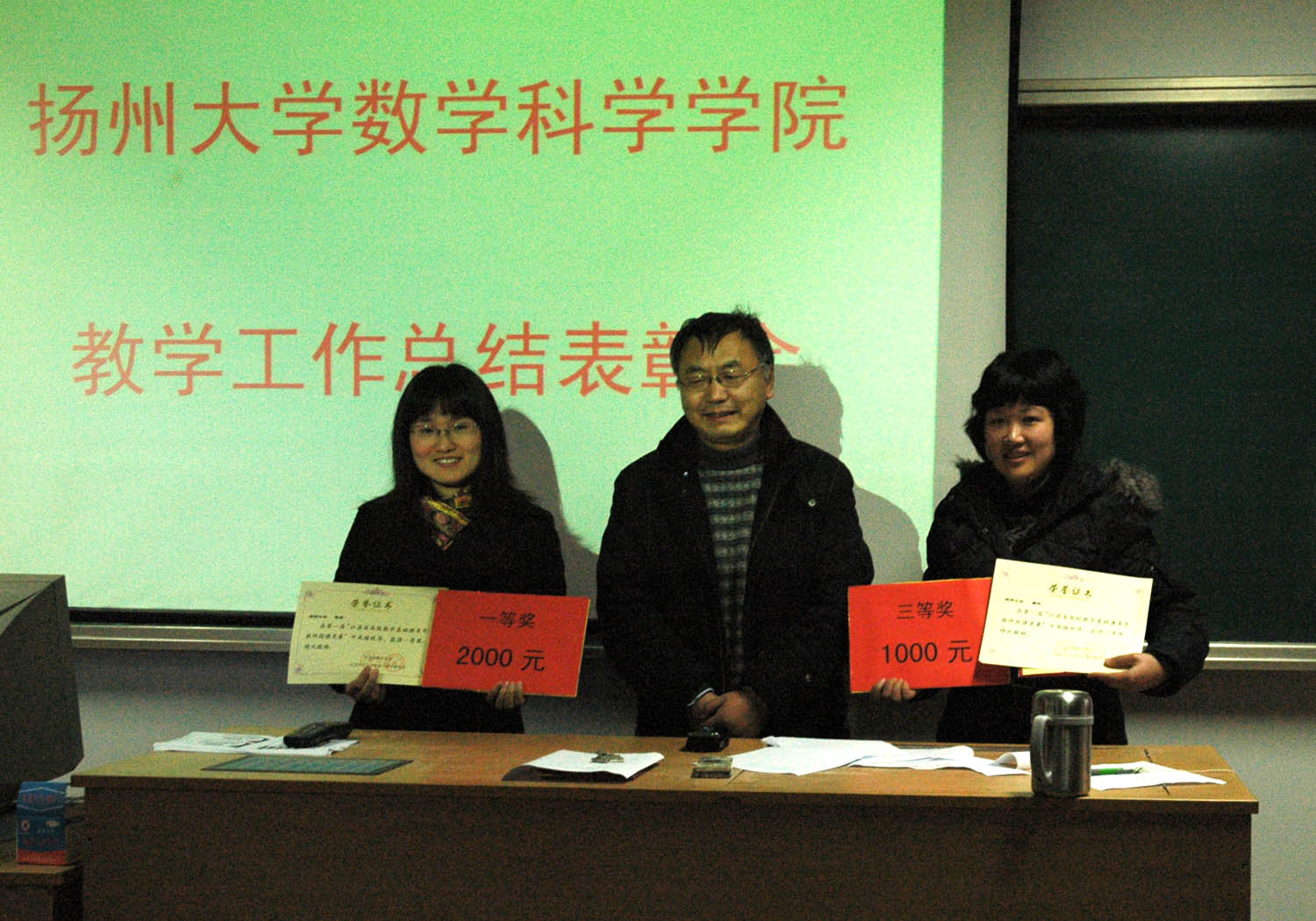 为进一步搞好教学工作,全面提升学院教学工作水平,2010年1月20日下午数学科学学院召开了数学工作总结表彰会,教学院长刘金林对2009年的教学工作进行了总结。学院对2009年获得的教学奖项的教师进行了表彰奖励,由王宏玉院长颁发获奖证书。