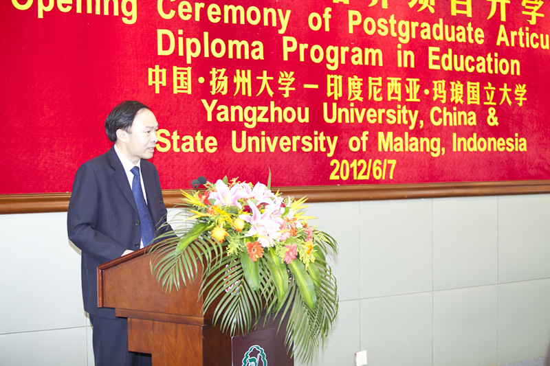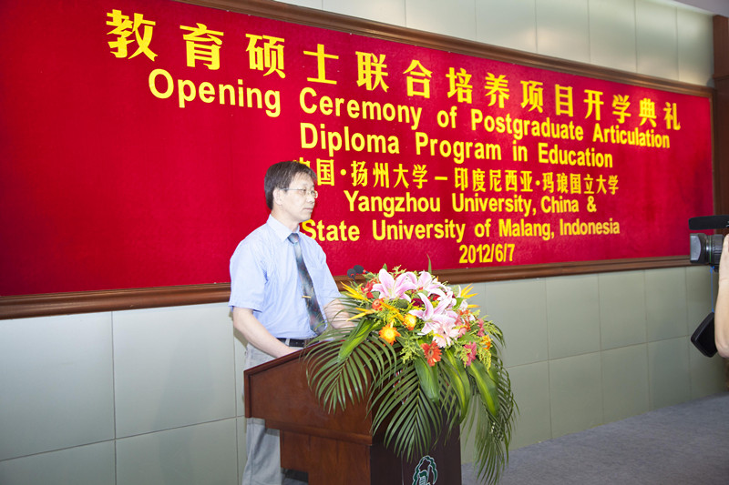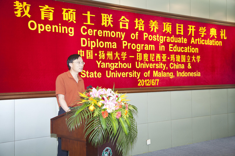 6月7日,扬州大学--印度尼西亚·玛琅国立大学教育硕士(数学)联合培养项目第二批学员共32人抵达我校,开始为期10周的课程学习。7日下午,学校举行开班典礼,副校长焦新安出席开班典礼并致辞。学员代表、教师代表分别发言,学员代表还向我院赠送了全体学员在印尼的集体照。研究生处、国际合作与交流处、海外教育学院、数学科学学院负责同志出席了开班典礼。