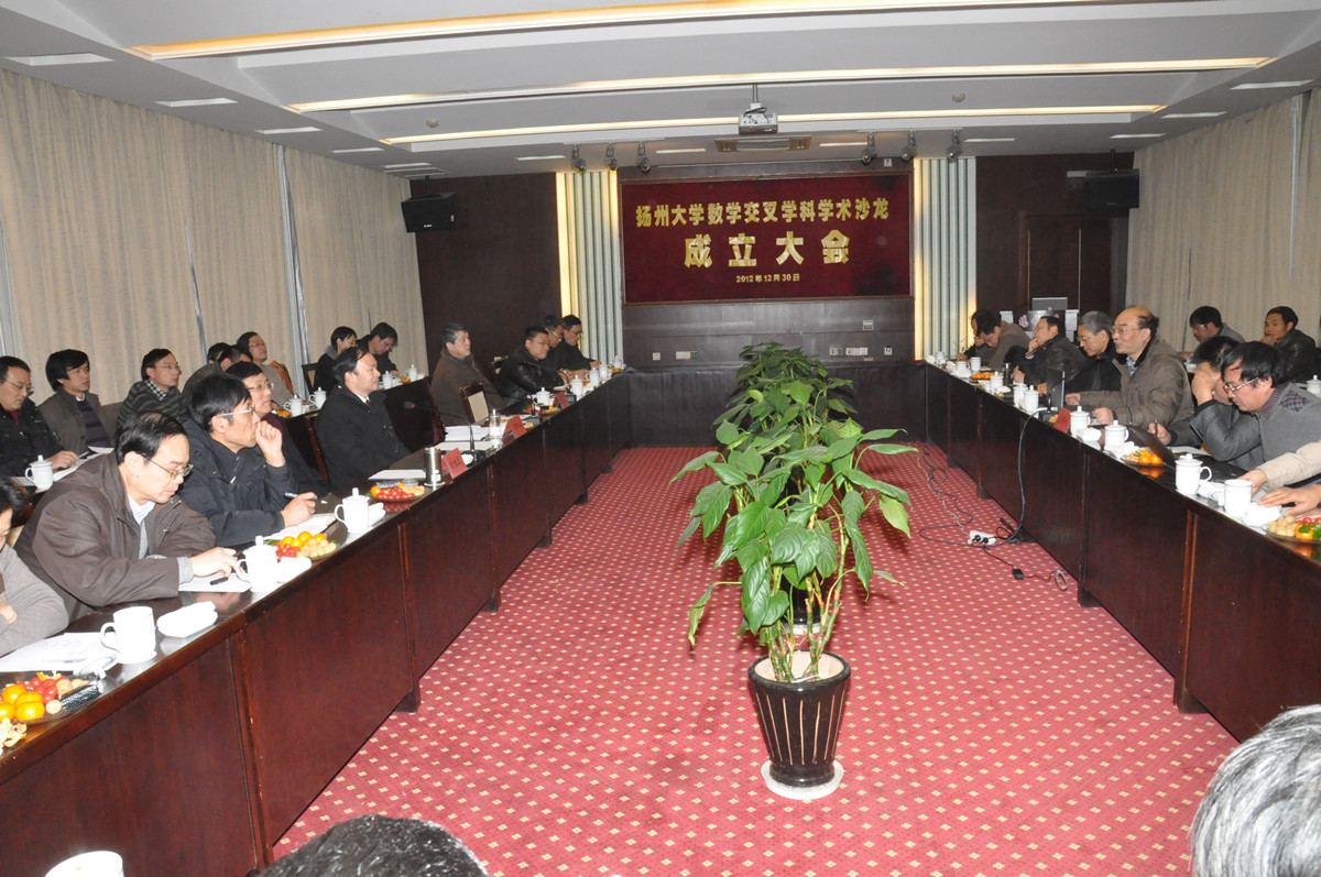 为促进学科在其他学科的应用、进一步拓展数学学科的内涵,12月30日下午,我院在虹桥专家楼三楼会议室召开数学交叉学科学术沙龙成立大会。校长焦新安,副校长刘祖汉、陈国宏出席会议并分别讲话。科技处负责同志,物理学院、化学学院、机械学院、信息学院、建工学院、水利学院、能动学院、环境学院、农学院、动科学院、兽医学院、生技学院、商学院的院长及有关教授、学者共计60余人应邀出席会议。
