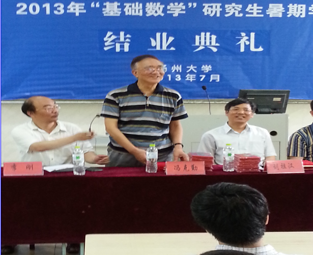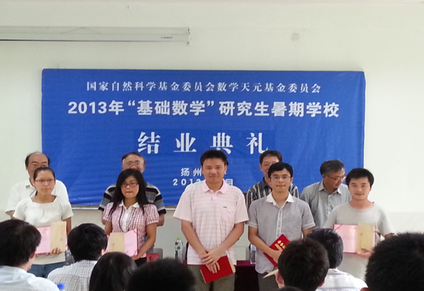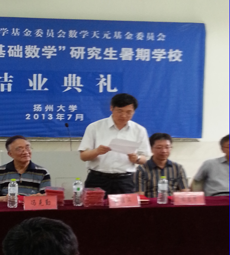 2013年7月22日,由教育部、国家自然科学基金委数学天元基金委资助的第二届全国“基础数学”研究生暑期学校在扬州大学圆满闭幕。扬州大学第二次被选为“基础数学”研究生暑期学校的承办单位。北京大学、南京大学、上海交通大学、厦门大学和山东大学等全国70多所高校的100余名博士、硕士研究生会聚扬州,圆满完成了为期26天的课程学习和学术讨论、学术交流活动。清华大学冯克勤教授,扬州大学副校长刘祖汉出席结业典礼并分别致辞。