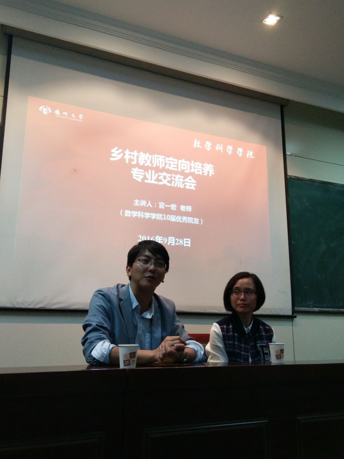 近日,在扬州大学数学科学学院的报告厅,面对台下33名该院首届乡村教师定向师范生,在乡村中学任教5年的该院2010届毕业生官一宏和爱人江希的激动之情溢于言表。