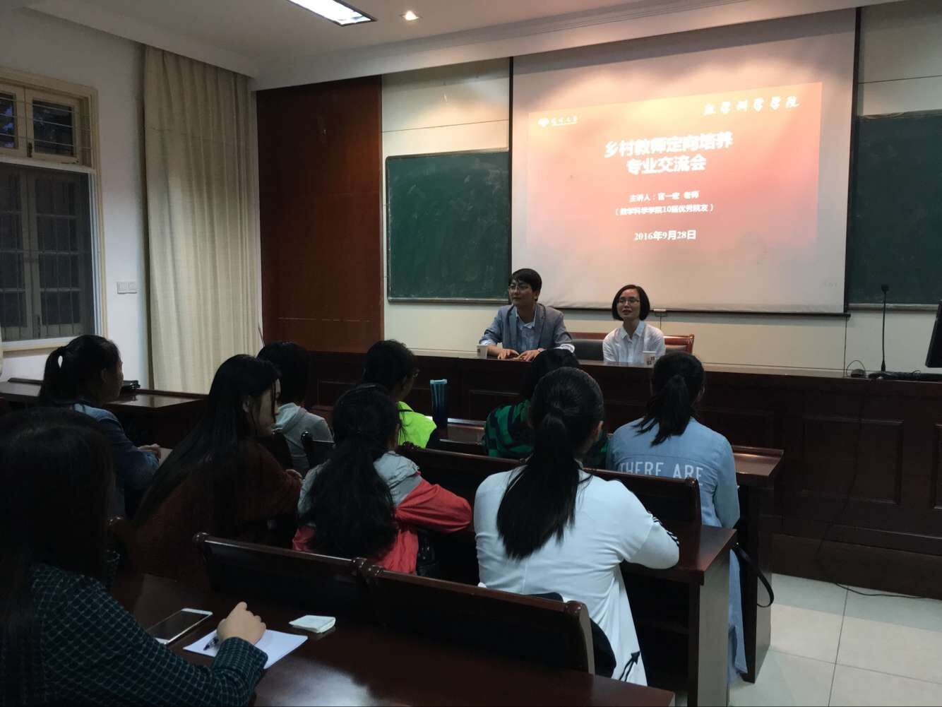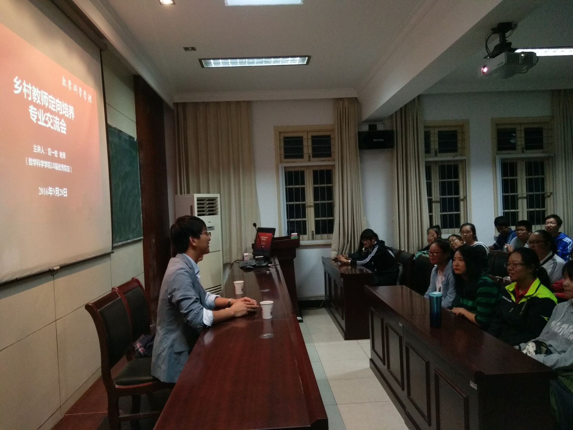 “6年前决定回到家乡中学任教的时候,我们教师的人数还不多;今天,有满满一教室的新生力量集结在这里,我们与大家相约:4年后,乡村学校见!”
