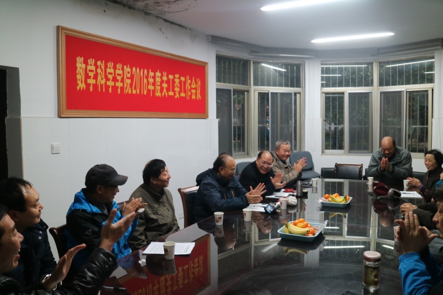 11月21日,数学科学学院在瘦西湖校区28号楼一楼会议室召开了2016年度关工委工作会议,校关工委叶蕴珊书记、刘方云主任出席会议,学院关工委詹玉铸、丁湘等7位老同志,党委书记刘长龙、副书记朱鑫铨,工会主席张春华、办公室主任黄勇、团委书记陈佩沛、辅导员季中亚参加了会议。