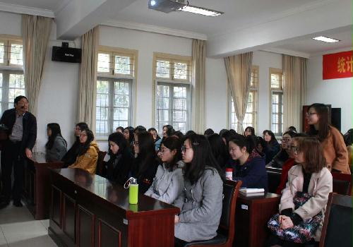 本次讲座以“做一名幸福的老师”为主题。讲座开始前,金老师向同学们询问关于讲座内容的建议并鼓励同学们在讲座过程中与老师积极互动,努力提出不同观点。