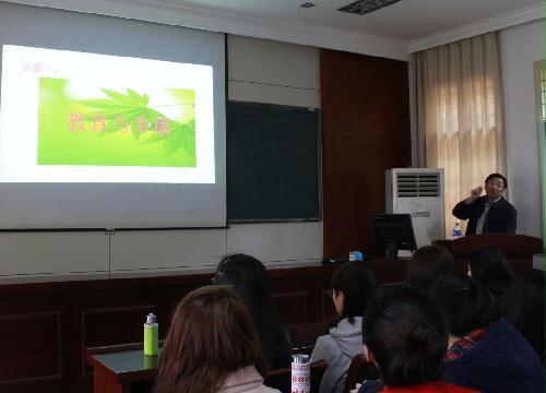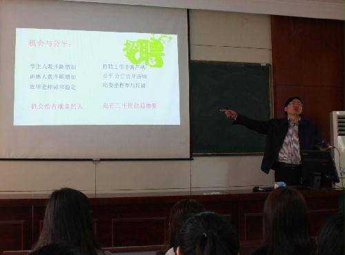 3月11日,我校杰出校友、南通市教育局副局长、金海清先生于瘦西湖校区38号楼108报告厅为数学师范专业的同学们做了一个关于“如何做一名数学老师”的报告会。