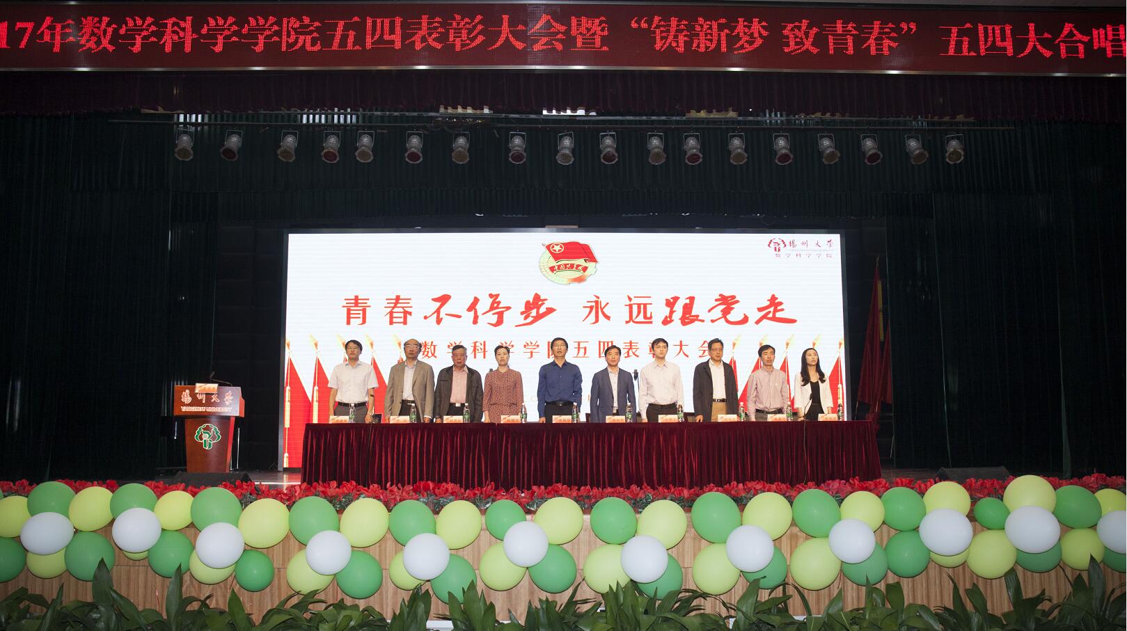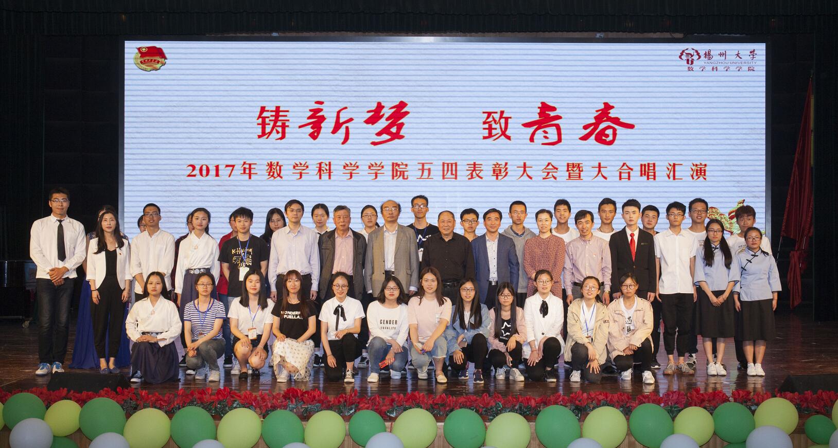 恰同学少年,风华正茂。数风流人物,还看今朝。5月7日下午,数学科学学院五四表彰大会暨“铸新梦致青春”五四大合唱汇演在扬州大学荷花池校区小剧场成功举行。