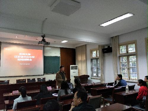 5月8日下午,江苏省兴化中学现场招聘会在我院报告厅举行。招聘会由数科院党委副书记朱鑫铨老师主持,校研工部部长、副院长赵晓兰老师、校研究生院副院长吉丹如老师、江苏省兴化中学招聘领导、老师参加了此次宣讲会,此次宣讲会吸引了文学院、数科院、物理学院近20名研究生参加。