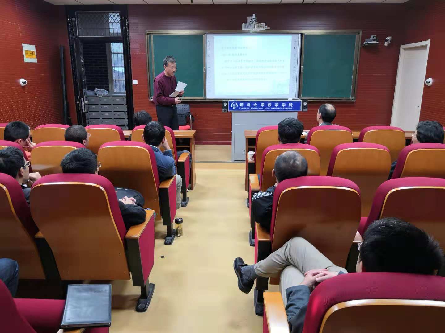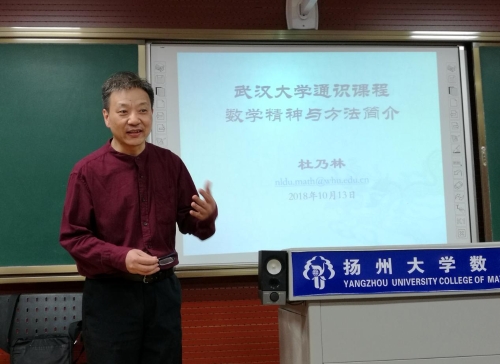 2018年10月13日下午我院在38-103举办了数学通识课教学研讨活动,武汉大学杜乃林教授作了《武汉大学通识课程数学精神与方法简介》的专题报告,副院长凌智、数学系系主任黄强联、通识课任课老师和部分青年教师20多人参加了研讨活动。