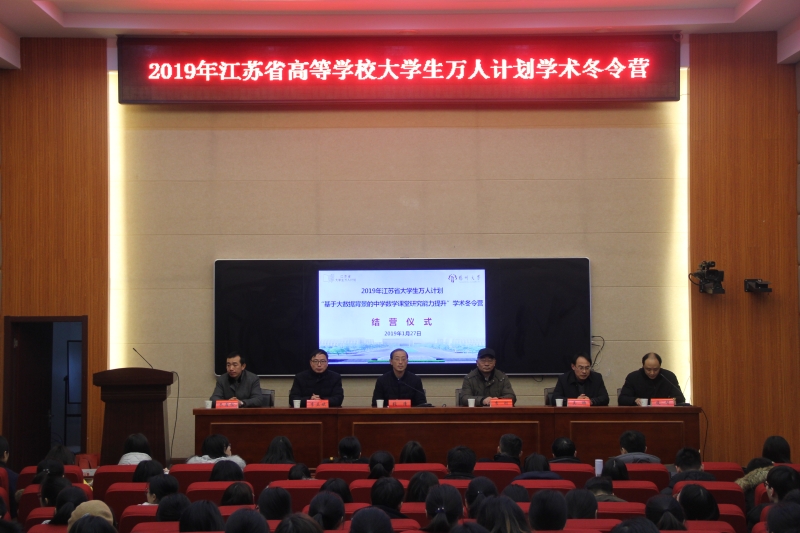为期一周的2019年江苏省高等学校大学生万人计划“基于大数据背景的中学数学课堂研究能力提升”学术冬令营圆满落幕,校教务处处长张清在闭幕式上致辞。