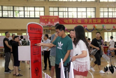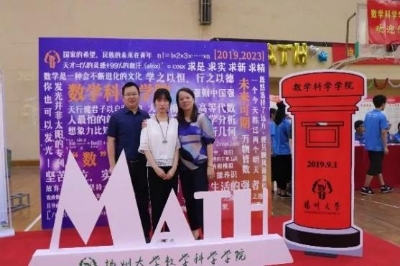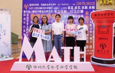 此外,我院为新生们准备了一块巨大的展板,展板上写着录取通知书中数学题答案:“2019-2023”,寓意着新生在四年中成长、成才;展板前方是白色的“MATHE”标志,每位前来报道的新生都可以站在标志后留影纪念。