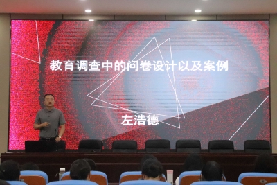 随后,左浩德老师讲解《教育调查研究方法及案例分析》,通过社会调查的特征、社会调查的题材、封面信、问题及答案、问卷设计的步骤、答案的设计、问卷1.0、数据分析、数据展示等内容,为同学们介绍了如何进行教育调查研究的方法和步骤,并借助17级科创组同学设计的问卷初稿,为同学们提供了学习借鉴的案例。