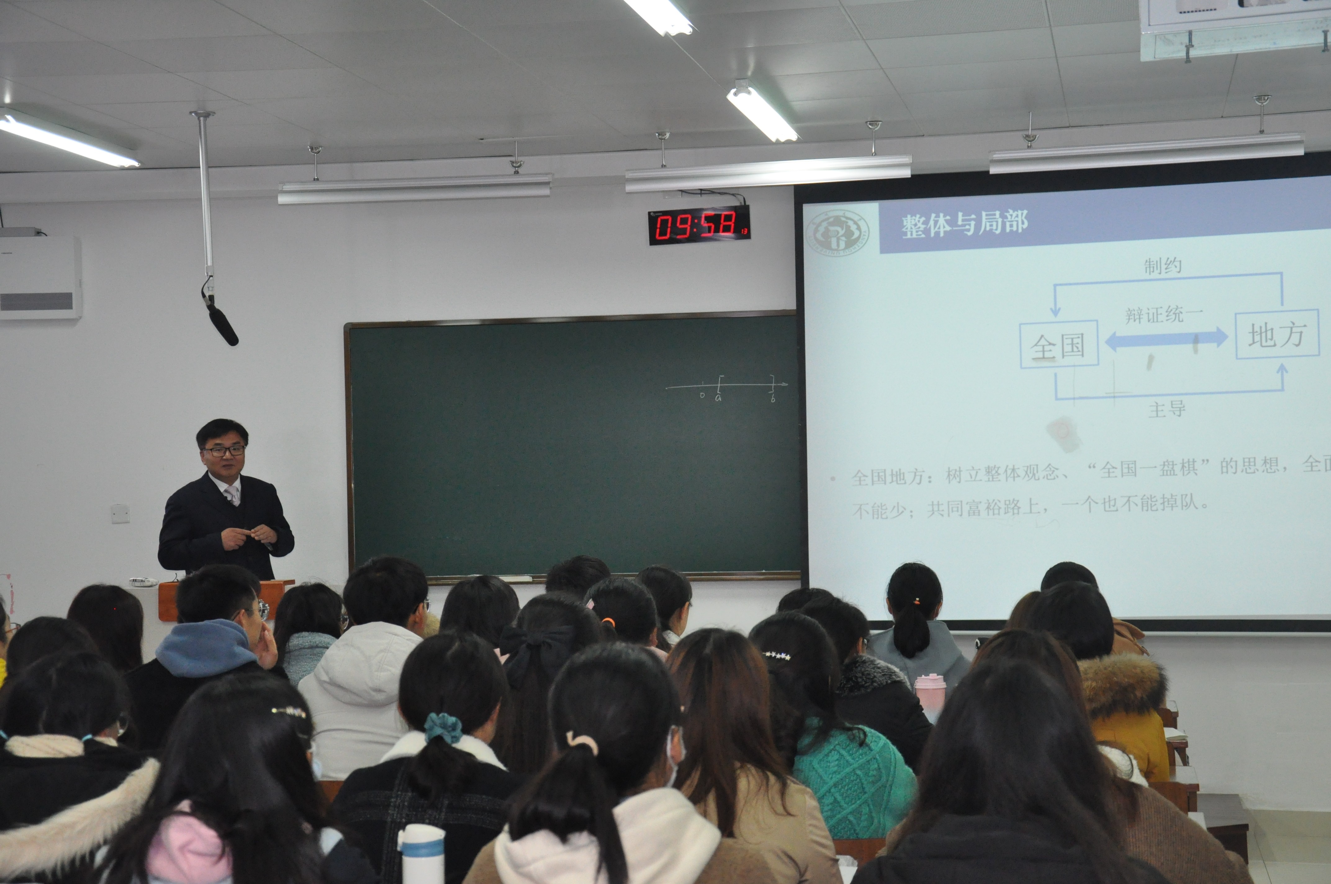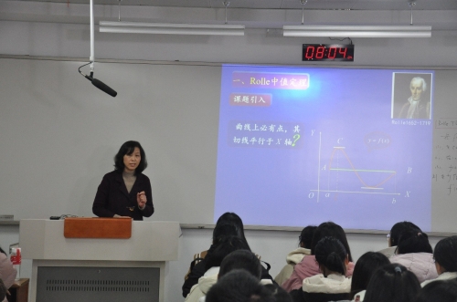 为进一步推动 “课程思政”教育教学改革,促进思政教育与专业教育的有效融合,充分发挥教授的示范引领带动作用,形成“课程思政”建设全面推进的良好氛围,根据学校教务处安排,我院教授观摩课活动于11月26日上午在瘦西湖校区新教学楼举行,周正新教授和黄强联教授分别主讲了《微分中值定理的探究——走近数学大咖,你也能成为数学家!》《有限闭区间上连续函数性质》。