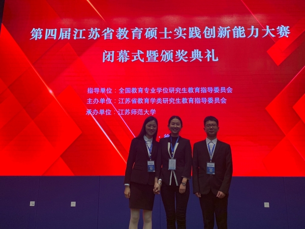 11月27日至29日,第四届江苏省教育硕士实践创新能力大赛在江苏师范大学举行。我院2019级教育硕士刘晓语、顾秋丹和丁浩钊三名同学参加比赛。在研究生院和学院领导的关心支持下,在数科院数学教育团队教师和校外专家尤善培老师的悉心指导下,经过激烈角逐,我院三位参赛选手创下我院历史最高佳绩:刘晓语同学斩获大赛特等奖,丁浩钊同学荣获大赛一等奖,顾秋丹同学荣获大赛二等奖。此外刘晓语同学作为全省优秀参赛学生代表在颁奖大会上进行微教学展示。