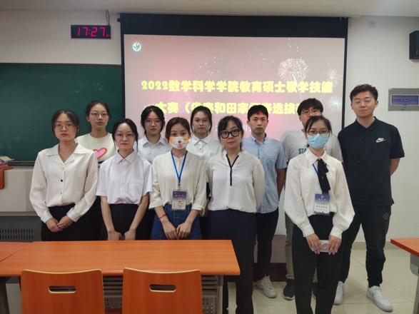 2022年6月12日,扬州大学数学科学学院第三届教育类硕士实践创新能力大赛在瘦西湖校区8号楼举行。学院组织3位教育硕士导师担任本次比赛的评委,50名教育类硕士研究生经过第一轮微课题的比赛和第二轮模拟讲课教学比赛,共产生李璐、邱宇潇一等奖选手2名,李玟洁等二等奖选手4名,以及王若等三等奖选手7名。