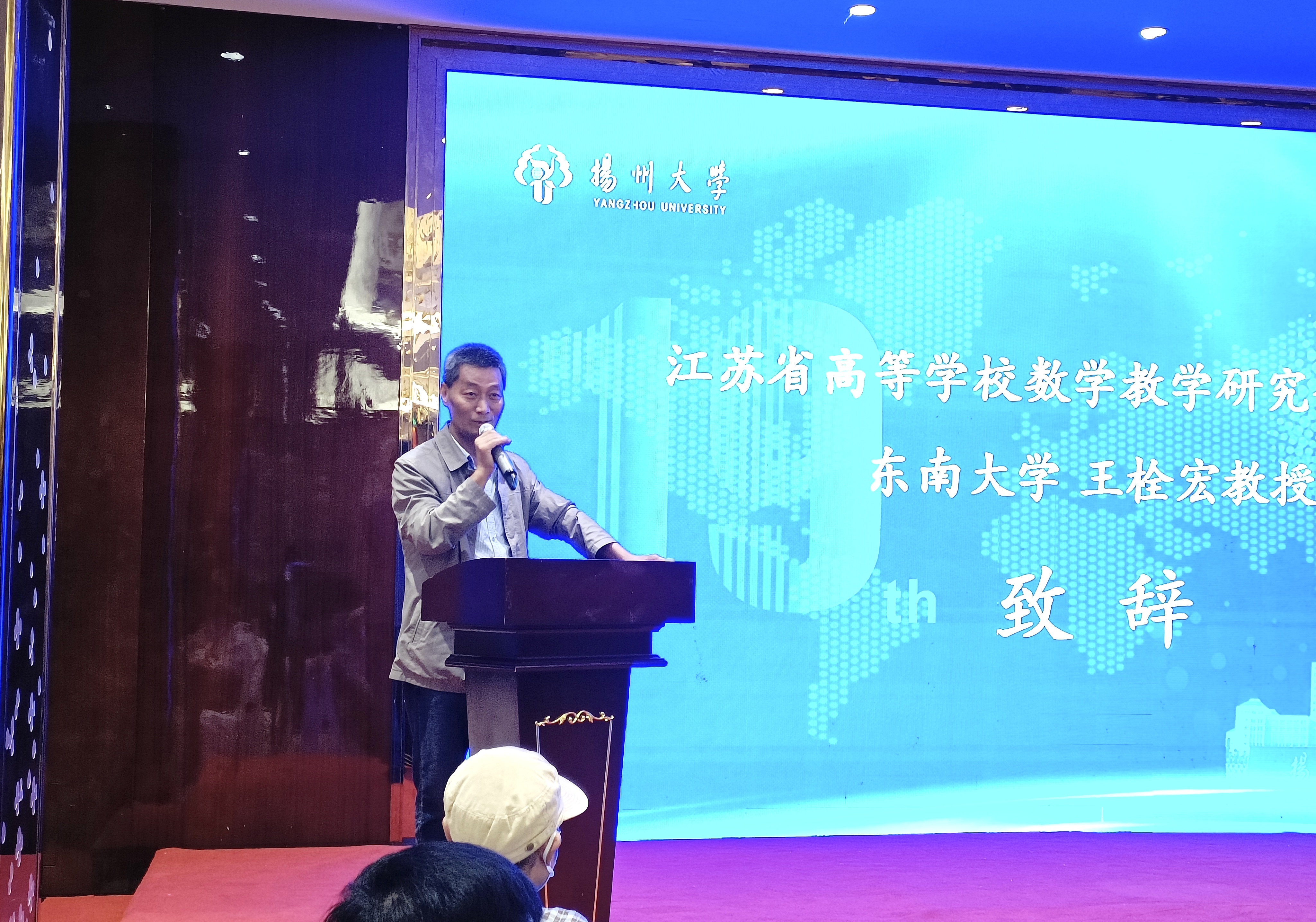 王栓宏教授代表江苏省高等学校数学教学研究会感谢扬州大学数学科学学院的认真筹备和精心组织,以及各位理事、专家对高等数学竞赛的支持、帮助和辛勤付出。他表示随着参赛人数逐年增多,高数竞赛的影响力逐渐扩大,更要秉承客观公正的原则,圆满完成阅卷评审和研讨分析工作。