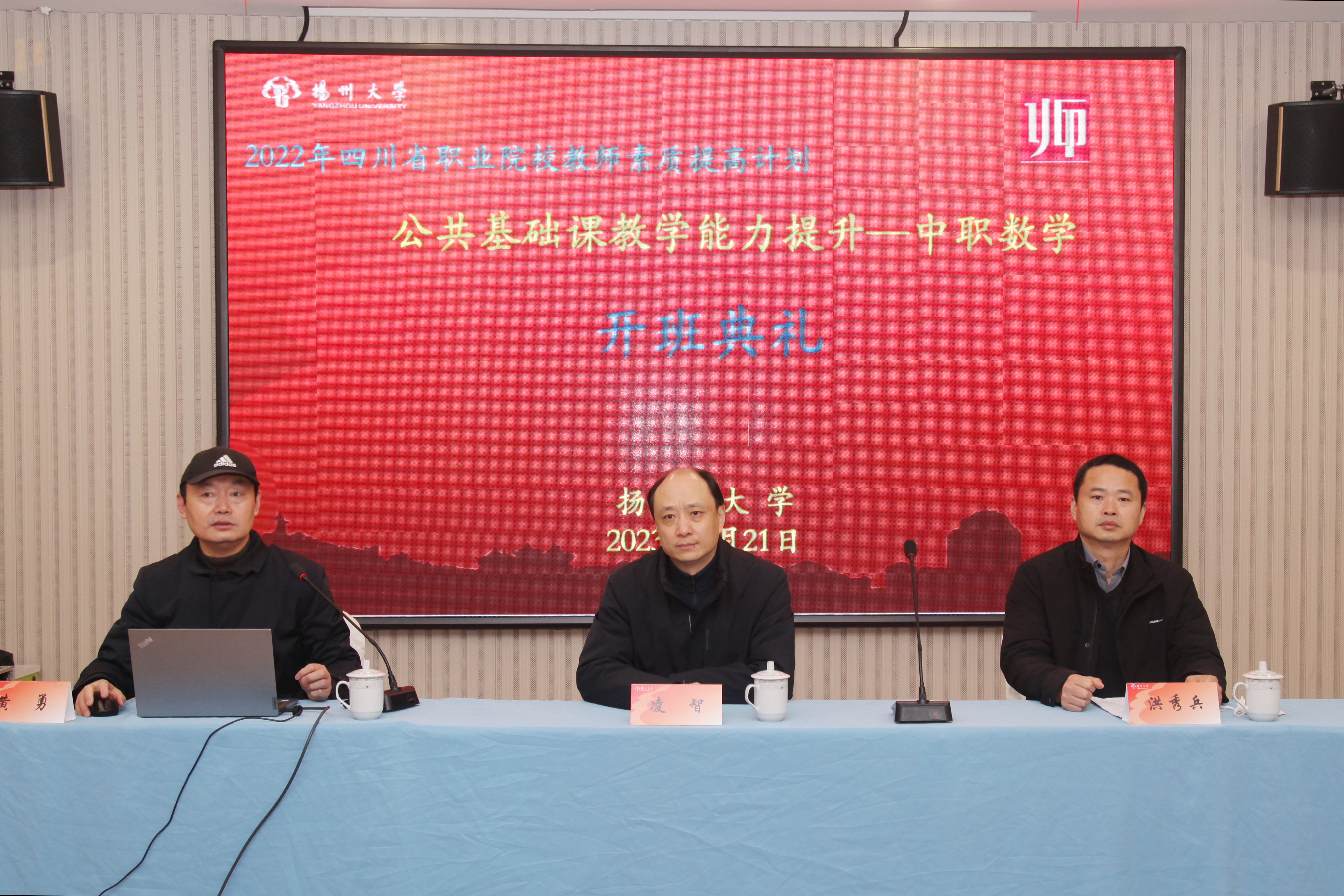 春分至,万物生,正是培训好时节。3月21日,2022年四川省职业院校教师素质提高计划——公共基础课教学能力提升(中职数学)培训班顺利开班。扬州大学数学科学学院院长凌智、扬州大学继续教育学院、管理培训学院副院长洪秀兵、扬州大学数学科学学院副院长黄勇、院综合办公室主任徐相军以及来自四川省中职院校的40名教师出席了开班典礼。典礼由黄勇主持。