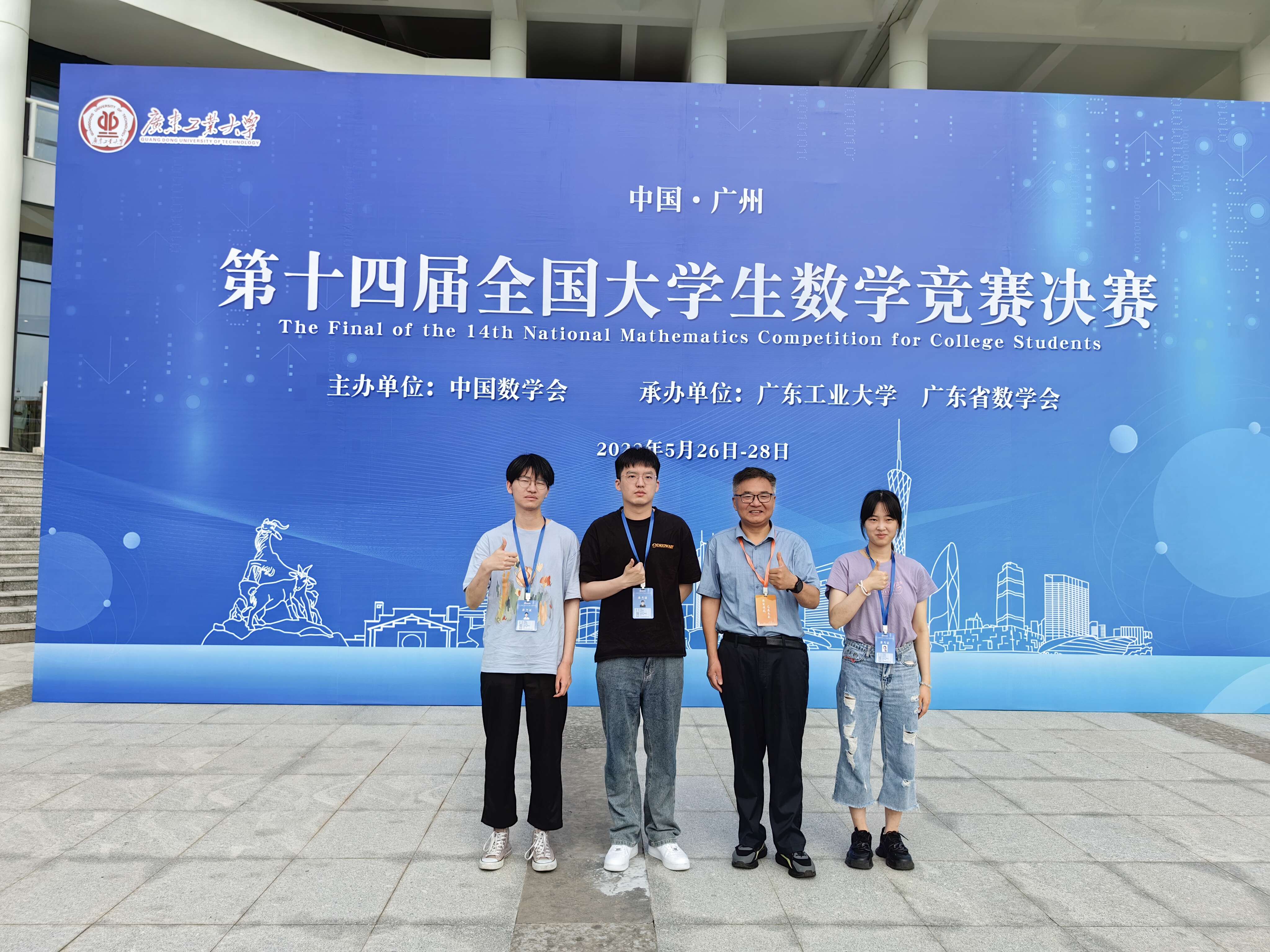 5月26日至28日,由中国数学会主办的第十四届全国大学生数学竞赛决赛在广东工业大学举行。我校数学科学学院陈范彬妍、居杰、申帅华和电气与能源动力工程学院金煜、张鑫宇五位同学从北京大学、清华大学等1024所高校逾23万名预赛选手中脱颖而出,与来自32个赛区的922名决赛选手齐聚一堂展开角逐,会师顶峰。