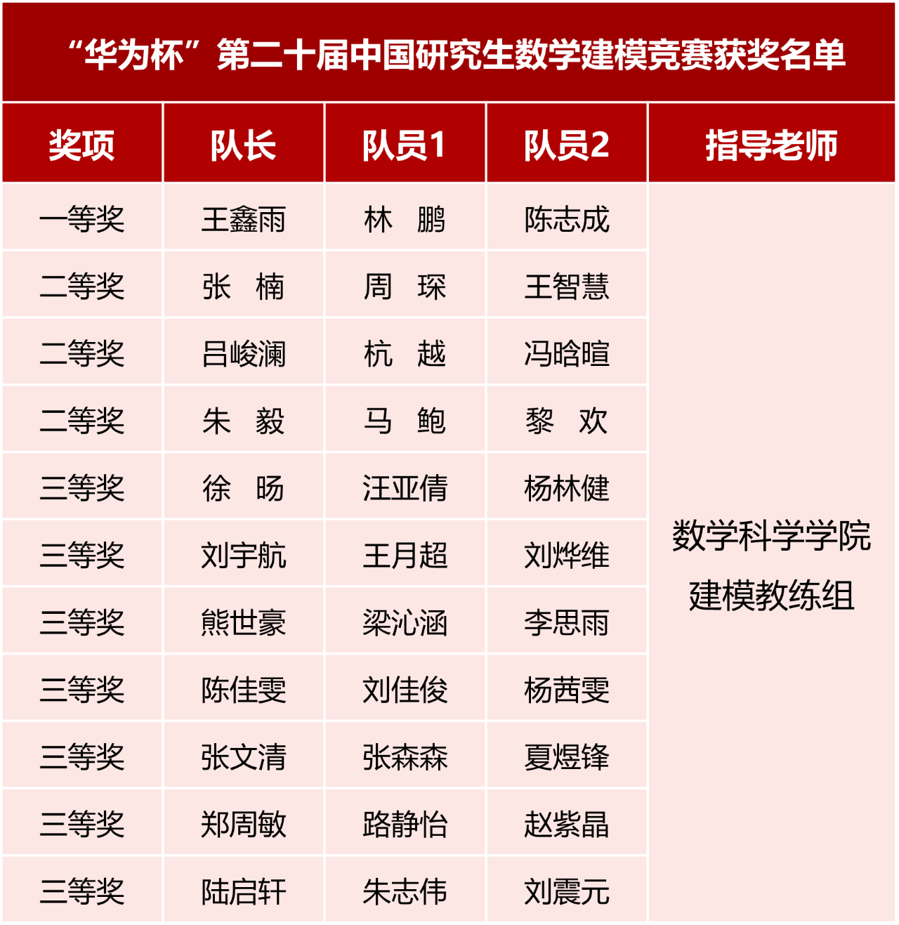 近日,“华为杯”第二十届中国研究生数学建模竞赛获奖名单揭晓。经过激烈角逐,我院研究生代表队荣获佳绩,共获奖11项,其中一等奖1项,二等奖3项,三等7项。在获奖数量与质量方面又有了新的突破。