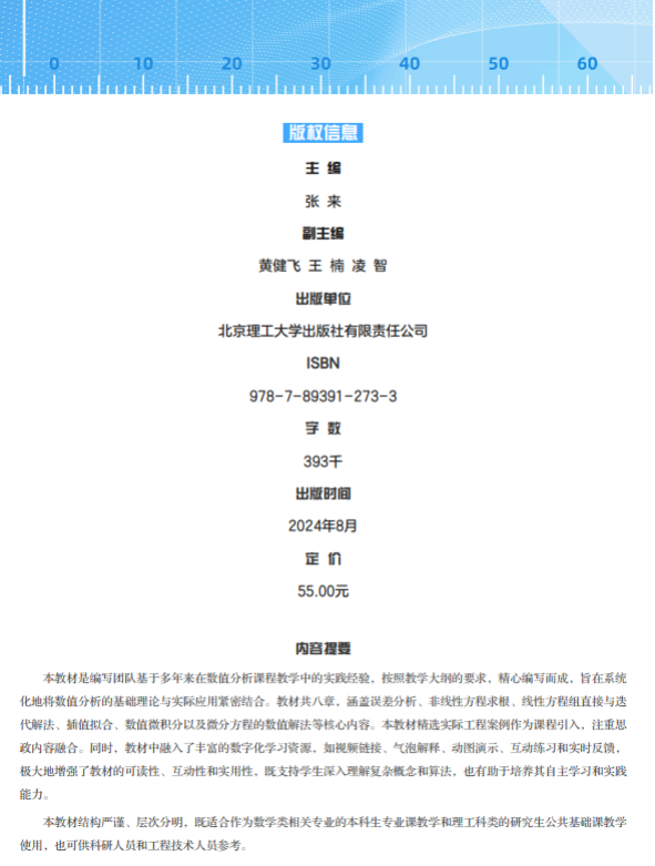 我院数值分析教学团队编写的数字教材《数值分析》已于近日由北京理工大学出版社正式出版上线。