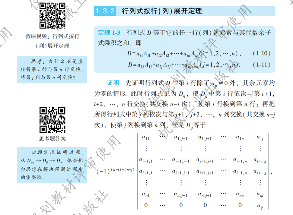 教材以矩阵代数为主线,学生主体更突出。本教材定位教学对象为普通高等学校非数学专业本科生,依据学生的认知基础特点,结合数学学科特性,从矩阵工具出发学习线性代数,希冀学生更易接受和理解。引入向量空间、子空间,让向量组的秩和矩阵的秩,在线性关系下统一处理,明确联系;“矩阵的秩”和“向量组的秩”分章而居,难点分解;矩阵相似对角化和二次型理论分章编写,分别对应矩阵的相似和合同理论,既突出了内容的对应,又有利于学生理解与掌握。“一个不能少”、“矩阵加密”等课例示范课程思政,践行教书育人。
