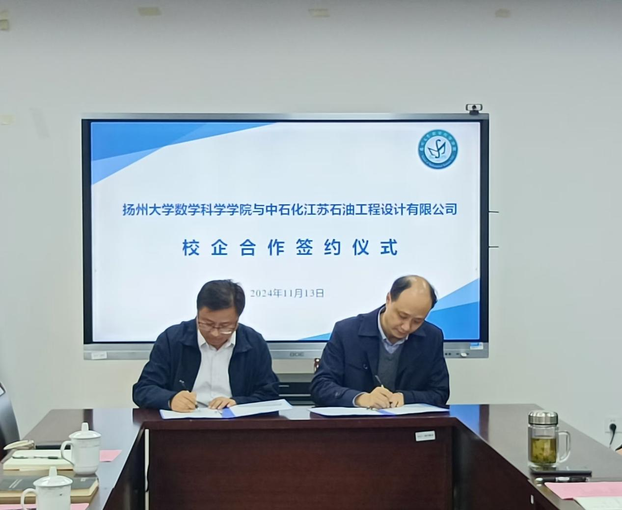 11月13日,数学科学学院与中石化江苏石油工程设计有限公司举行校企合作协议签约会。石油工程设计公司江苏设计公司执行董事、总经理、党委书记杜培恩,学院党委书记郭丽、院长凌智,中石化江苏设计公司相关工作人员以及学院相关教师代表参会。