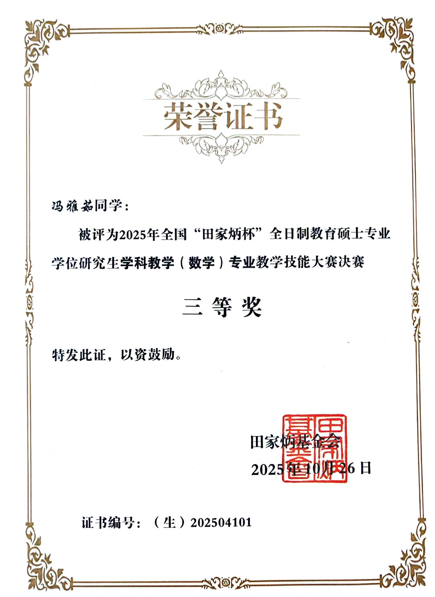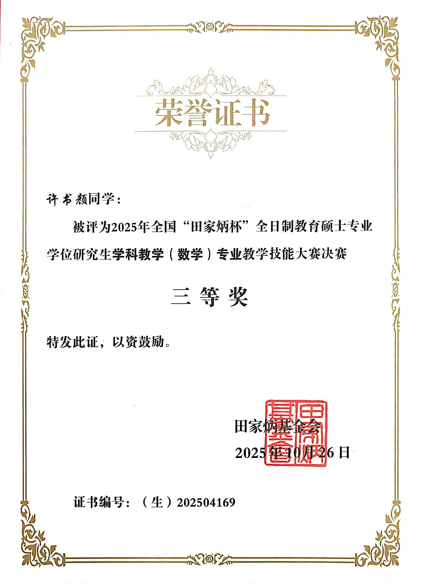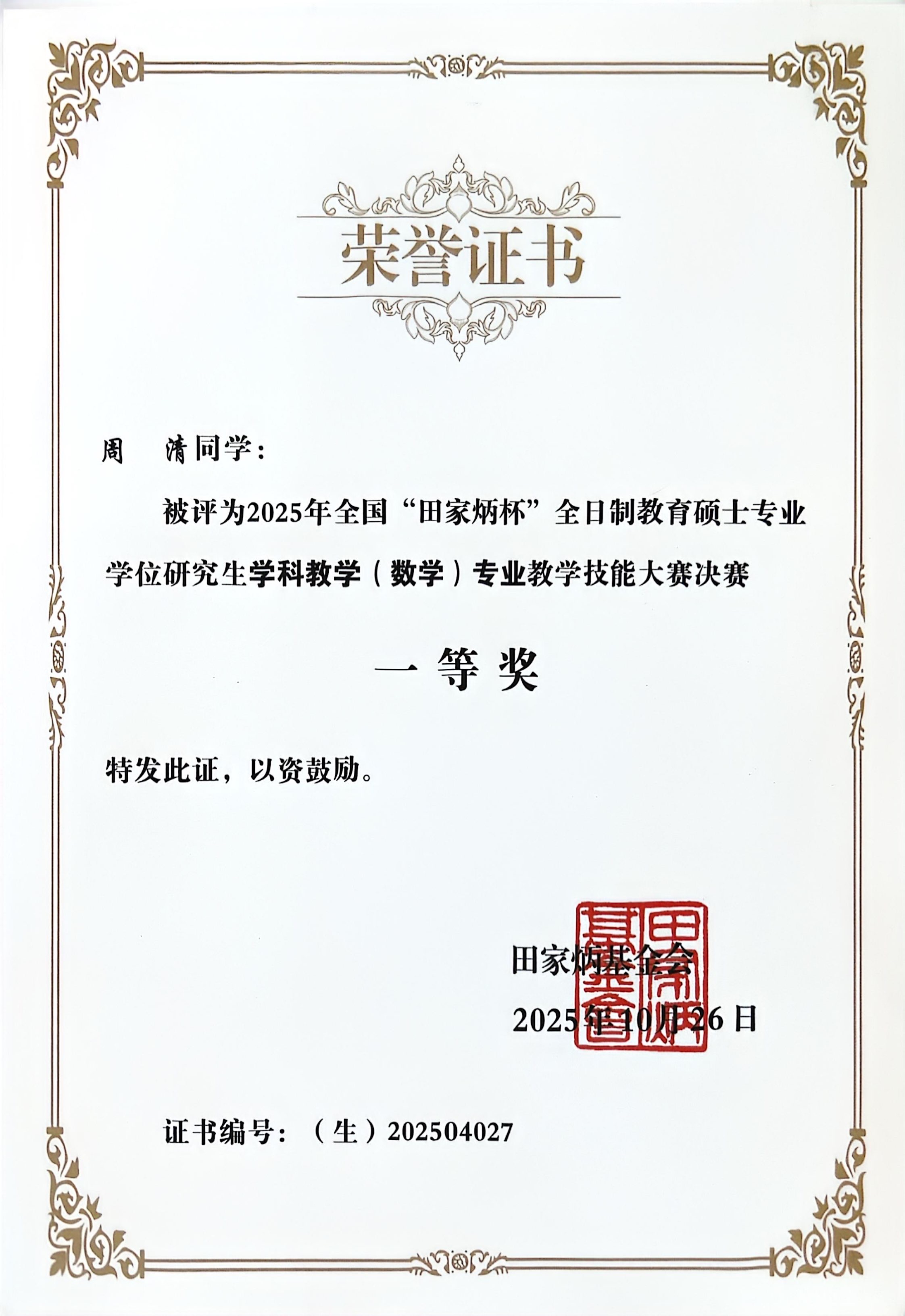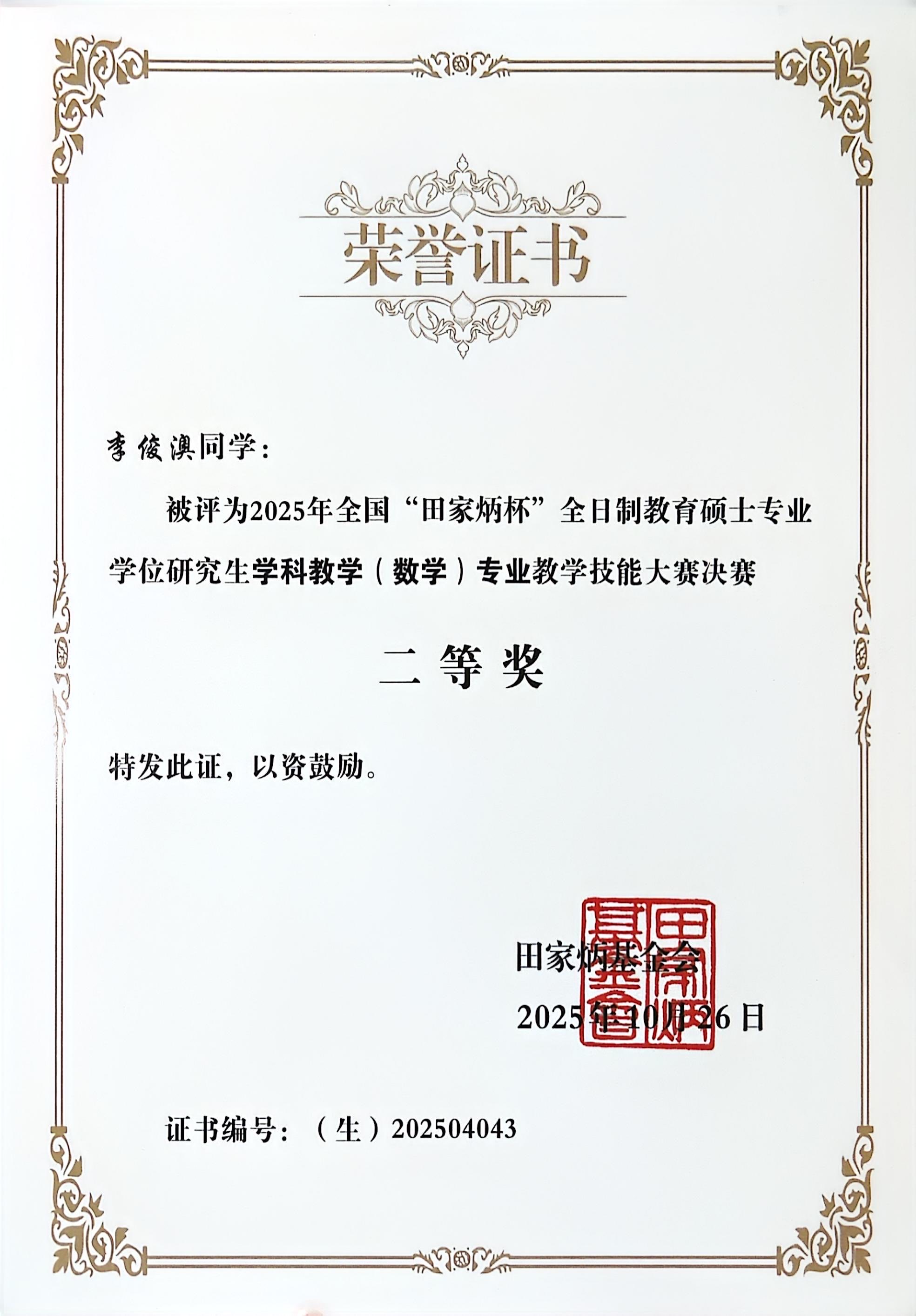 10月25日至26日, 2025年全国“田家炳杯”全日制教学硕士专业学位研究生学科教学(数学)专业教学技能大赛全国总决赛在西华师范大学圆满收官。据悉,本届“田家炳杯”教学技能大赛由全国教育专业学位研究生教育指导委员会主办,是学科教学(数学)领域最具权威性和影响力的全国性赛事之一。大赛吸引了来自北京师范大学、华东师范大学、东北师范大学、华中师范大学、上海交通大学等全国百余所高校的274名研究生参赛。