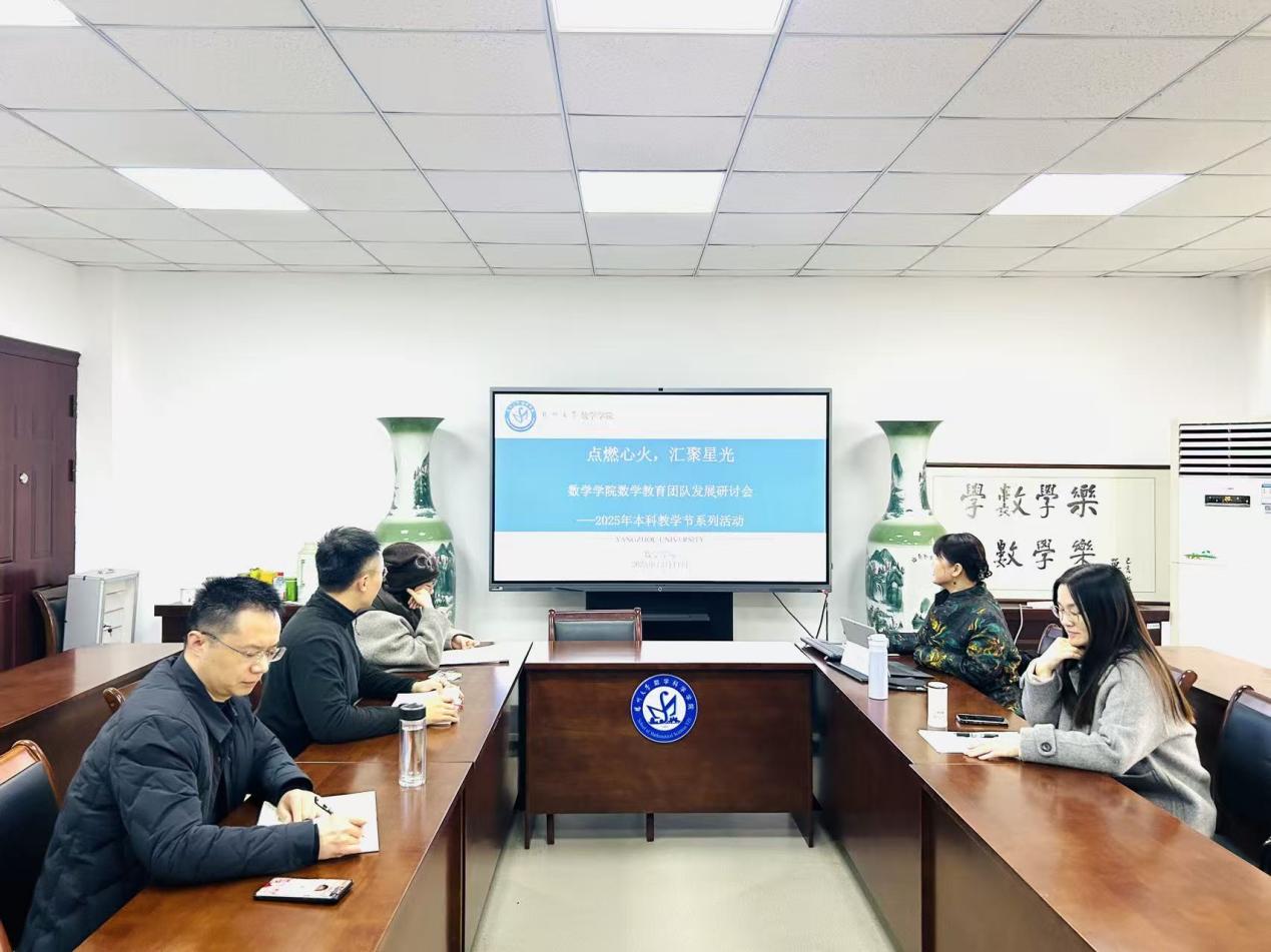 2025年12月11日下午,扬州大学数学学院本科教学节系列活动之数学教育团队发展研讨会顺利召开。学院院长张来出席会议,团队教师陈算荣、张波、左浩德、李卓忱等共同参加,围绕团队未来发展展开深入研讨。