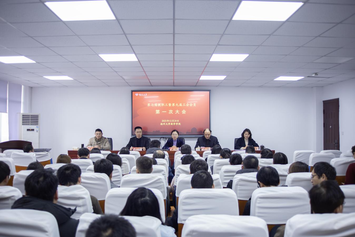 12月24日,数学学院在学院二楼报告厅隆重召开第七届教职工大会暨第九届工会会员大会第一次会议。院党委书记凌智主持会议,校工会主席洪岑出席会议并致辞。学院全体教职工参加会议。