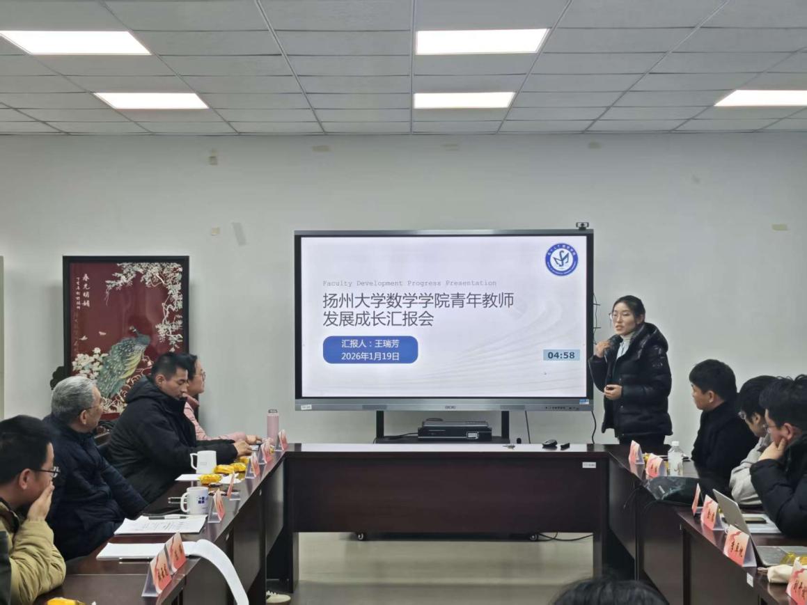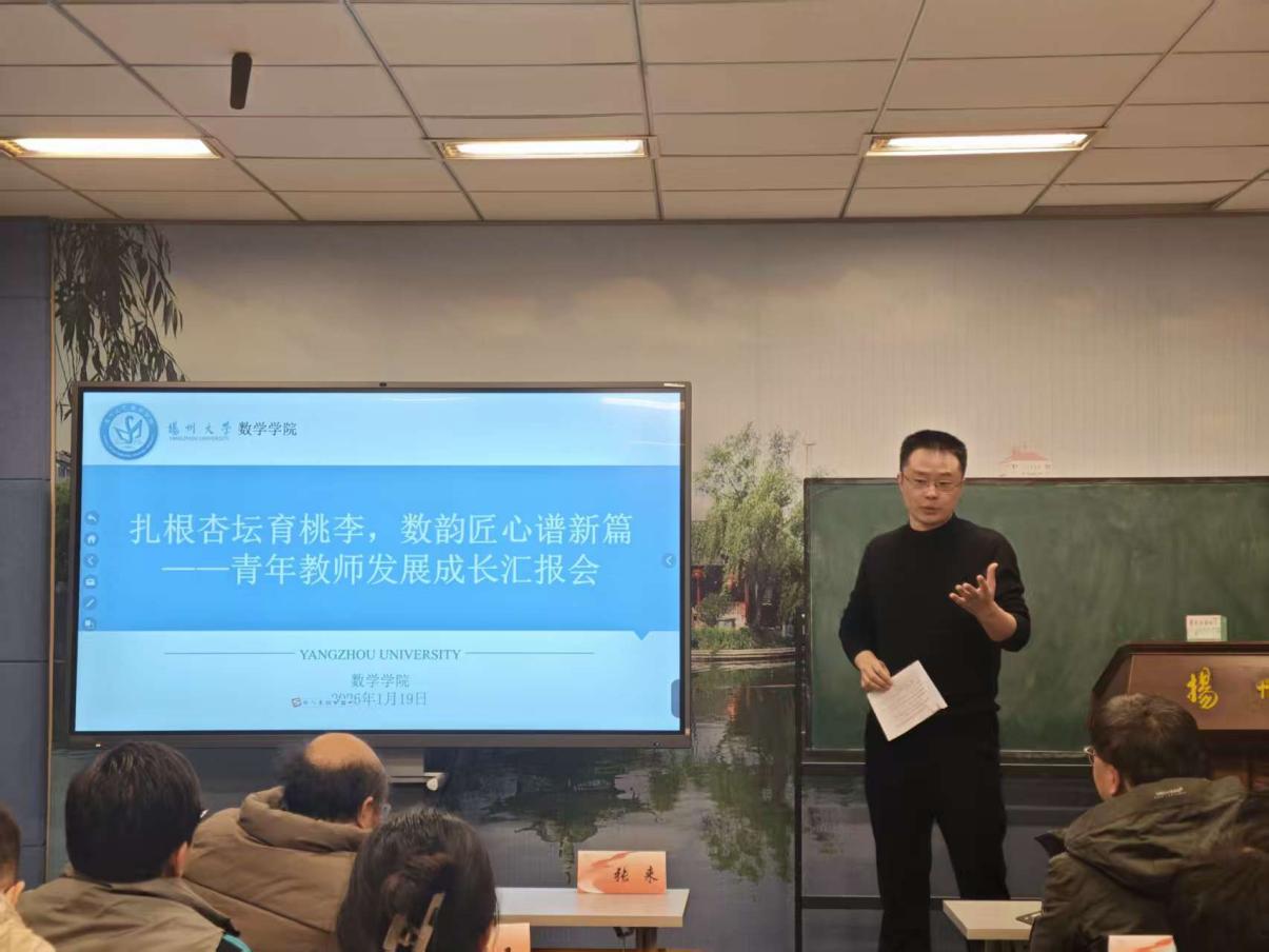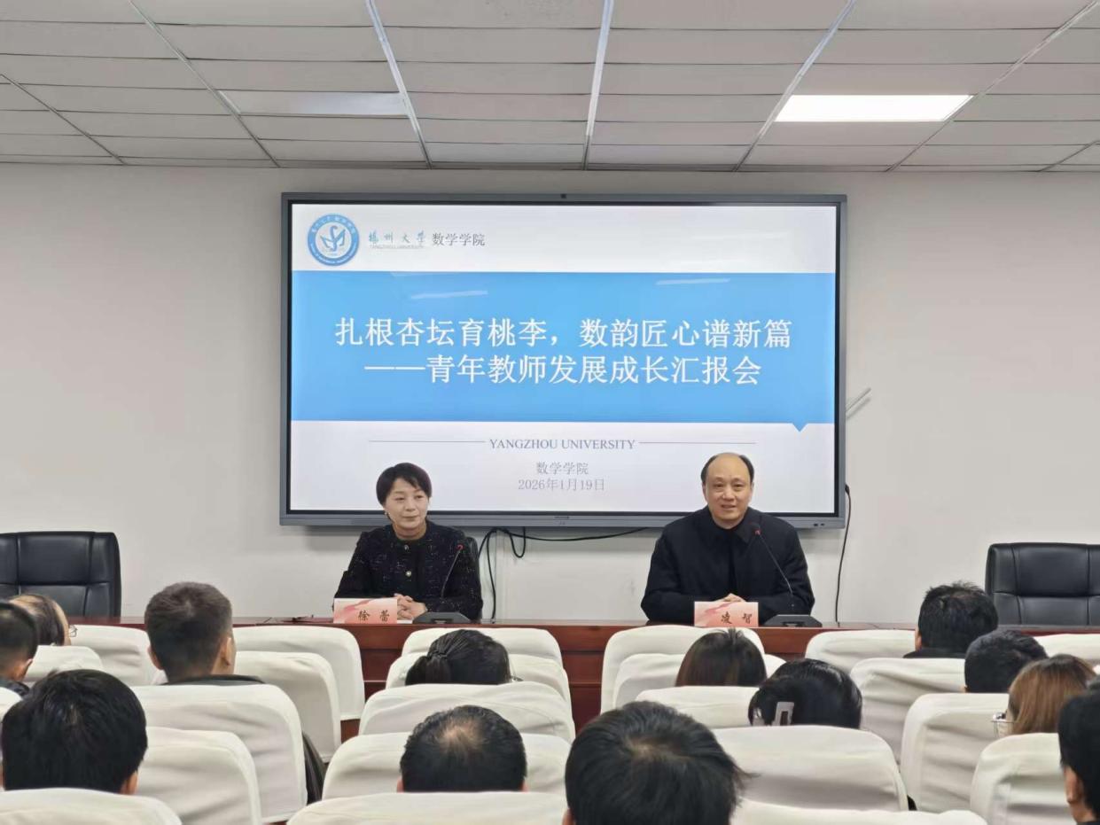 1月19日上午,扬州大学数学学院青年教师发展成长汇报会顺利举行。学校人力资源处处长徐蕾出席会议,学院党政领导班子成员、各系(部)负责人、点评专家与全院青年教师共计50余人齐聚一堂,共话成长。会议由学院党委书记凌智主持。