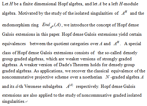 报告题目:Hopf dense Galois extensions with applications