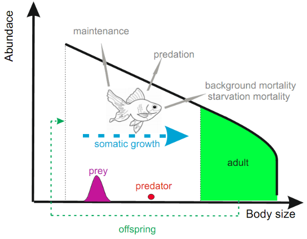 图4: 具尺度结构的数学模型:刻画了鱼类个体的生长发育的全过程