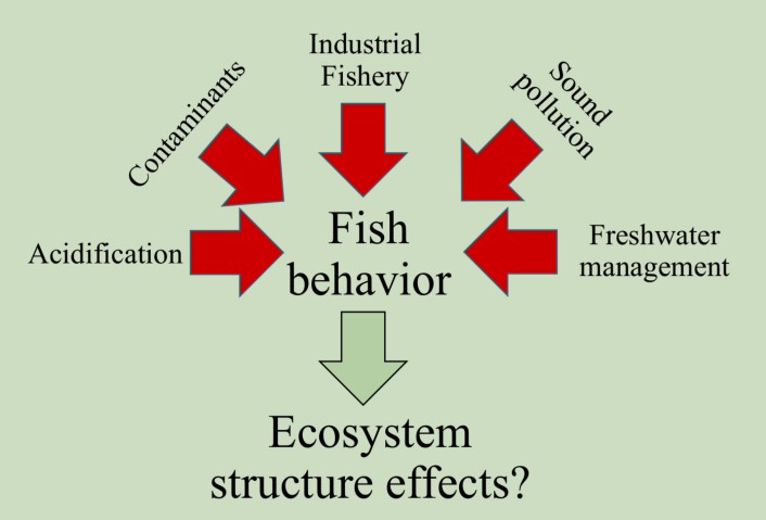 图3: 核心问题:鱼类行为的改变如何向上波及种群以及生态系统的结构?