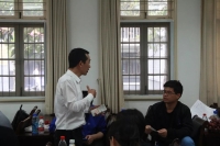 接着是校友杨一超,他目前于普通高校担任副教授。他向同学们分享了自己大学四年和研究生博士生的经验。他指出在大学四年要找准目标、抓紧努力,并且在不同的时期学习不同的知识。他建议大一时要学会与舍友相处、大二在社团中发挥自己的特长、大三见习期间与老师多沟通、大四注意实习与论文知识的掌握。他认为考研不需要过早准备,要合理安排考研复习时间与计划。在读研究生期间,他表示最重要的是自律,要认真学习,不要荒废时间,做到有条不紊的规划时间。在国外读博,他认为可以锻炼一个人的语言能力与独立能力。他还强调学习是一个循序渐进的过程,要不断的学习,珍惜时间,直面生活。