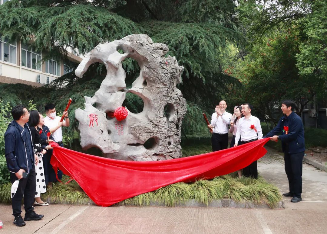 院党委书记郭丽、院长凌智和97级校友代表王祥富、陈磊、曹云霞、赵玉龙、苏翔等共同为感恩石揭幕。在热烈的掌声中,红绸徐徐落下,刻有篆体“数”字的感恩石在郁郁苍松的映衬下一展峥嵘,成为瘦西湖畔桃李园中又一处标志性风景。