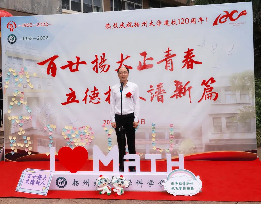 “巍巍感恩石,殷殷母校情”,97级校友、院党委副书记朱鑫铨主持揭幕仪式。扬州中学王祥富老师代表97级数学系全体同学致辞,他深情表达了对母校老师们辛勤培养的感谢,表示校友们一直关注和牵挂着母校的发展,将继续秉承“坚苦自立”校训,发扬学院从严治教精神,为党育人、为国育才,为中华民族伟大复兴贡献扬大数科人力量。祝母校取得新发展和新腾飞,百尺竿头、续写华章。