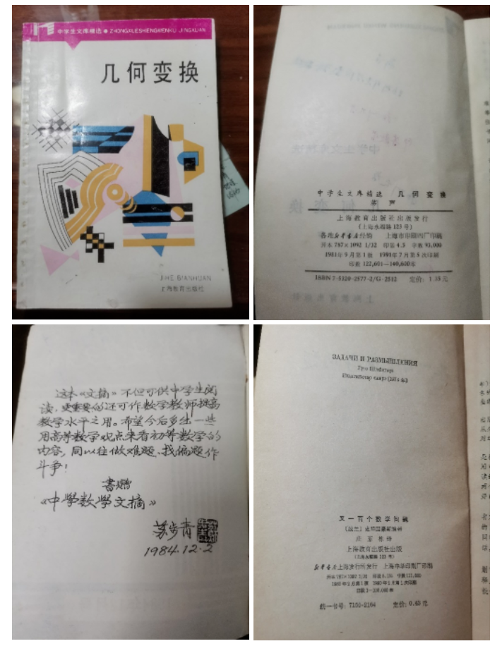 当得知我是陆老师的学生后,单老师很自然就谈起陆老师在科大的一些逸事,也提到了陆老师与黄利斌在单老师主编的《数学奥林匹克命题人讲座》丛书中的一本《解析几何》小册子。