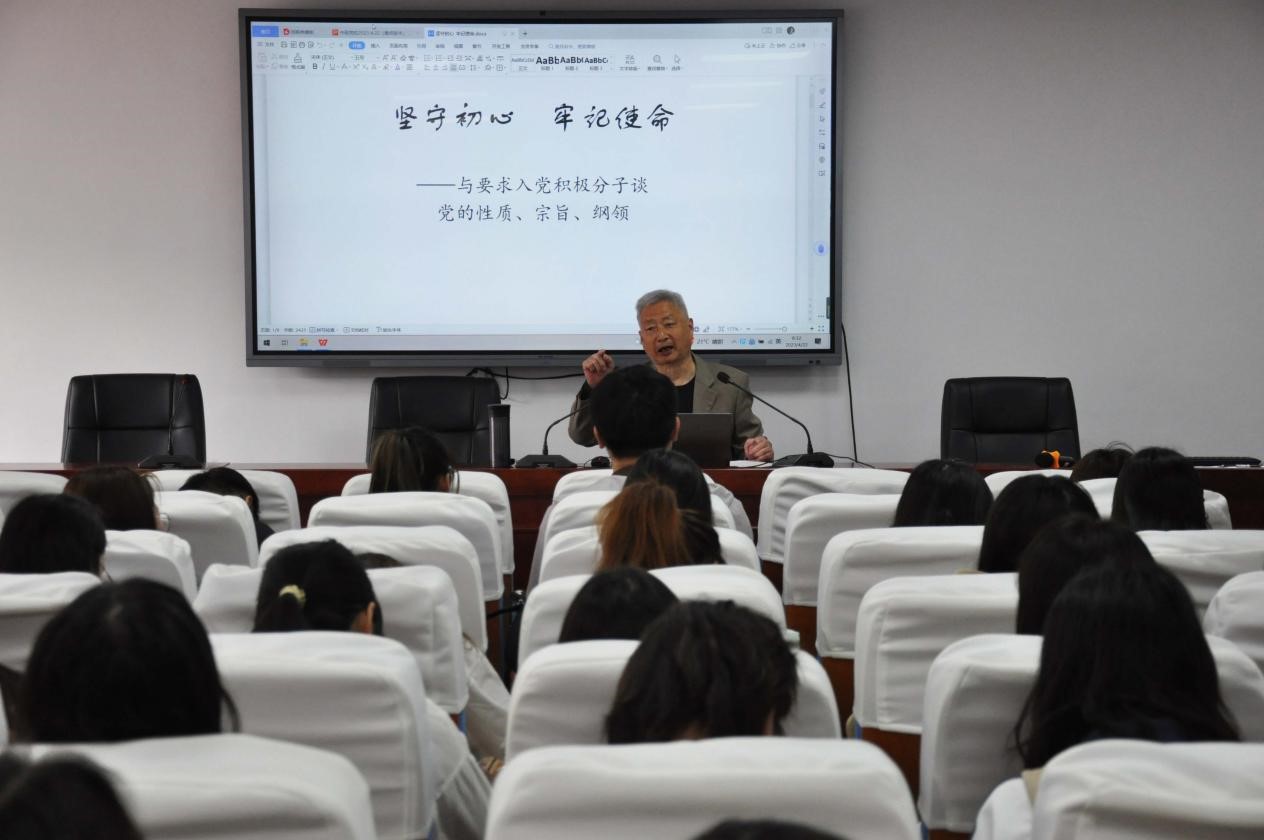 为进一步提高学生的政治理论水平,端正正确的入党动机,坚定共产主义理想信念,4月22日,邀请校关工委宣讲团顾瑞漒教授为数科院学子做题为“坚守初心牢记使命与要求入党积极分子谈党的性质、宗旨、纲领”的中级党校第一讲讲座培训,全院入党积极分子90人参加。