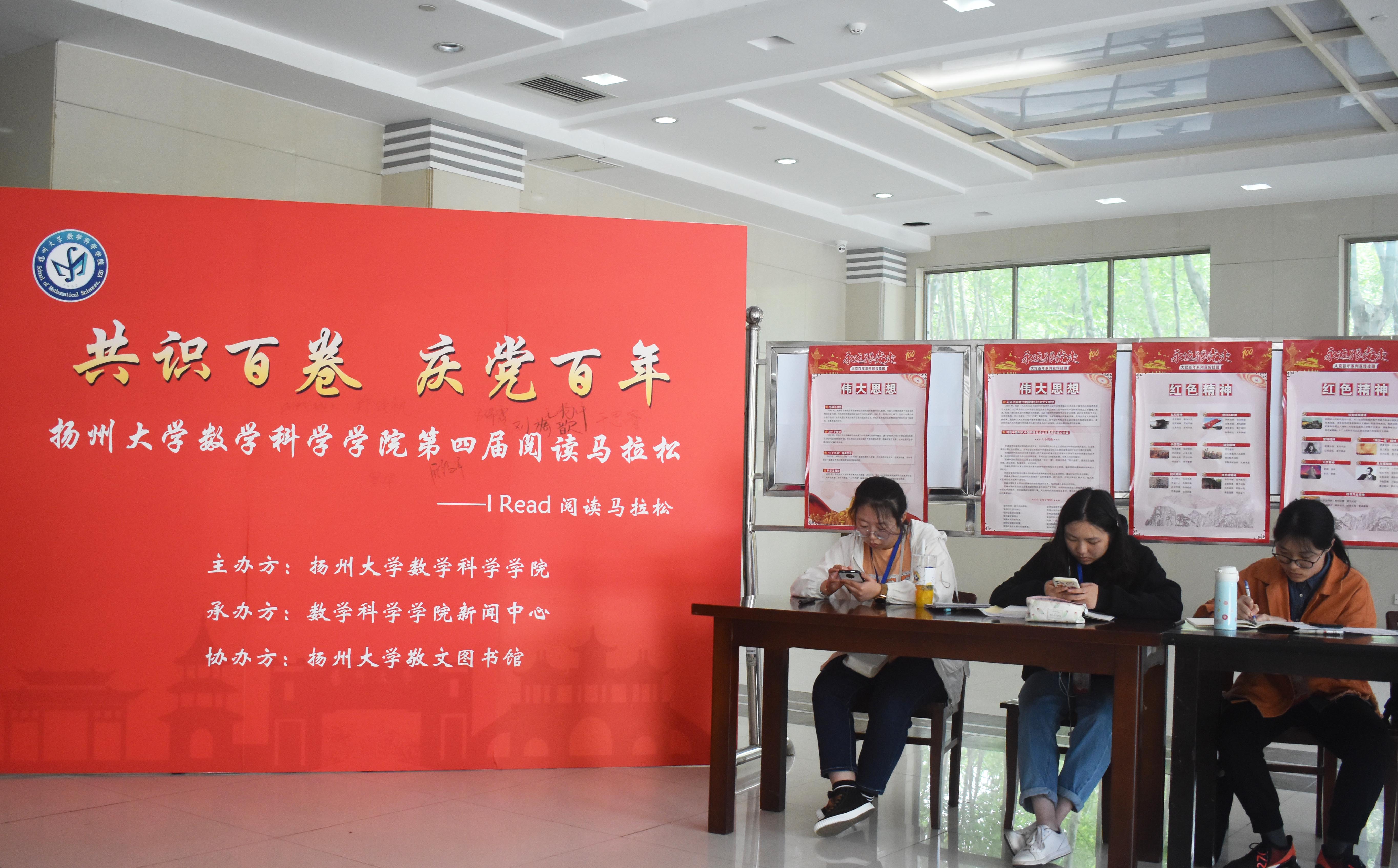 4月24日下午,为营造书香校园,深入贯彻党史学习教育,引导我校学生爱读书、读好书,数科院于瘦西湖校区敬文图书馆举办第四届“阅读马拉松”活动。本次阅读马拉松共分为阅读马拉松、“共读一本书”主题党日活动、书籍漂流等六个活动,参与人员可根据兴趣意向进行参与。